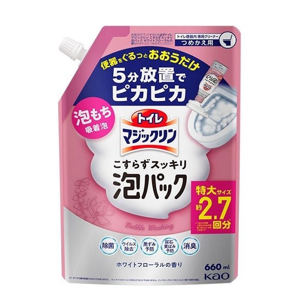 KAO Magic Clean Toilet White Floral Чистящая и дезинфицирующая спрей-пенка для туалета, с ароматом белых цветов, сменная упаковка, 660 мл.